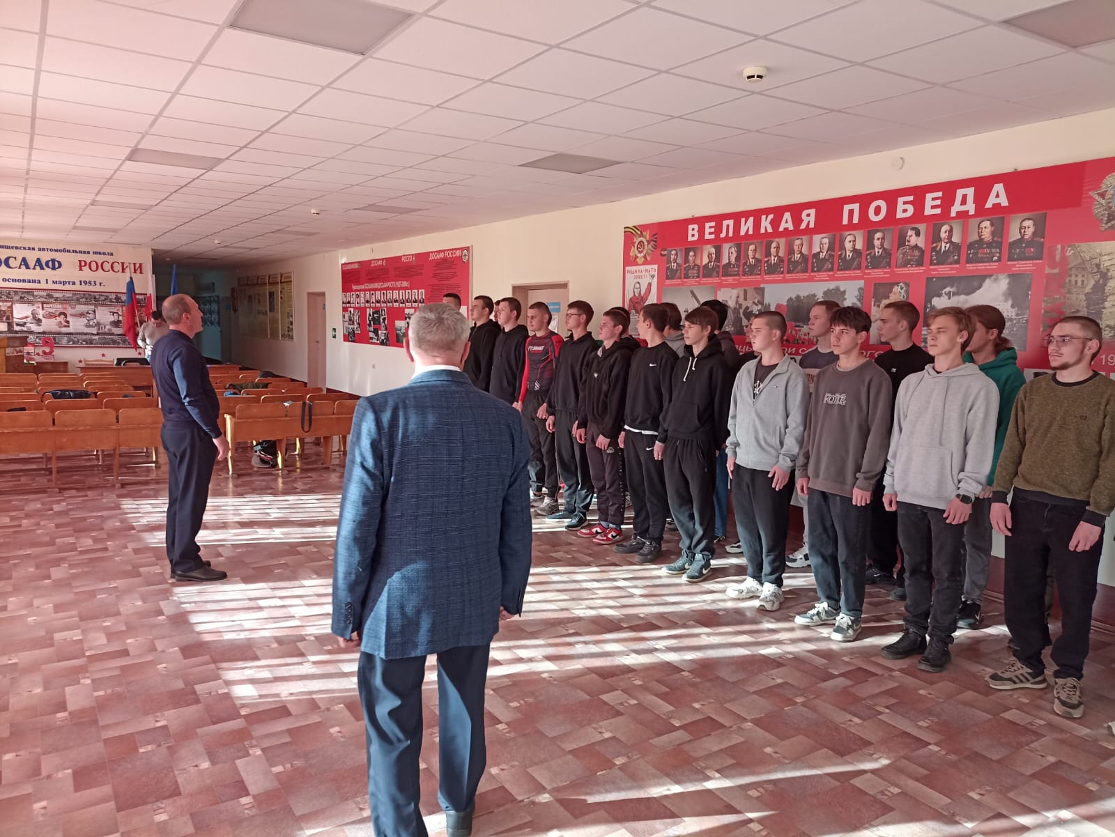 В Энгельсской автошколе ДОСААФ России 01.10.2025 года в торжественной обстановке состоялось открытие учебного периода по подготовке курсантов по ВУС-837. На мероприятии присутствовали военный комиссар Попов В.Е. и представитель администрации ЭМР.