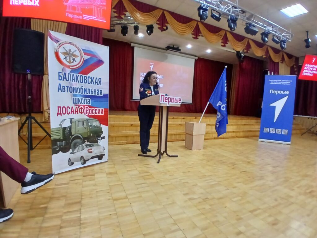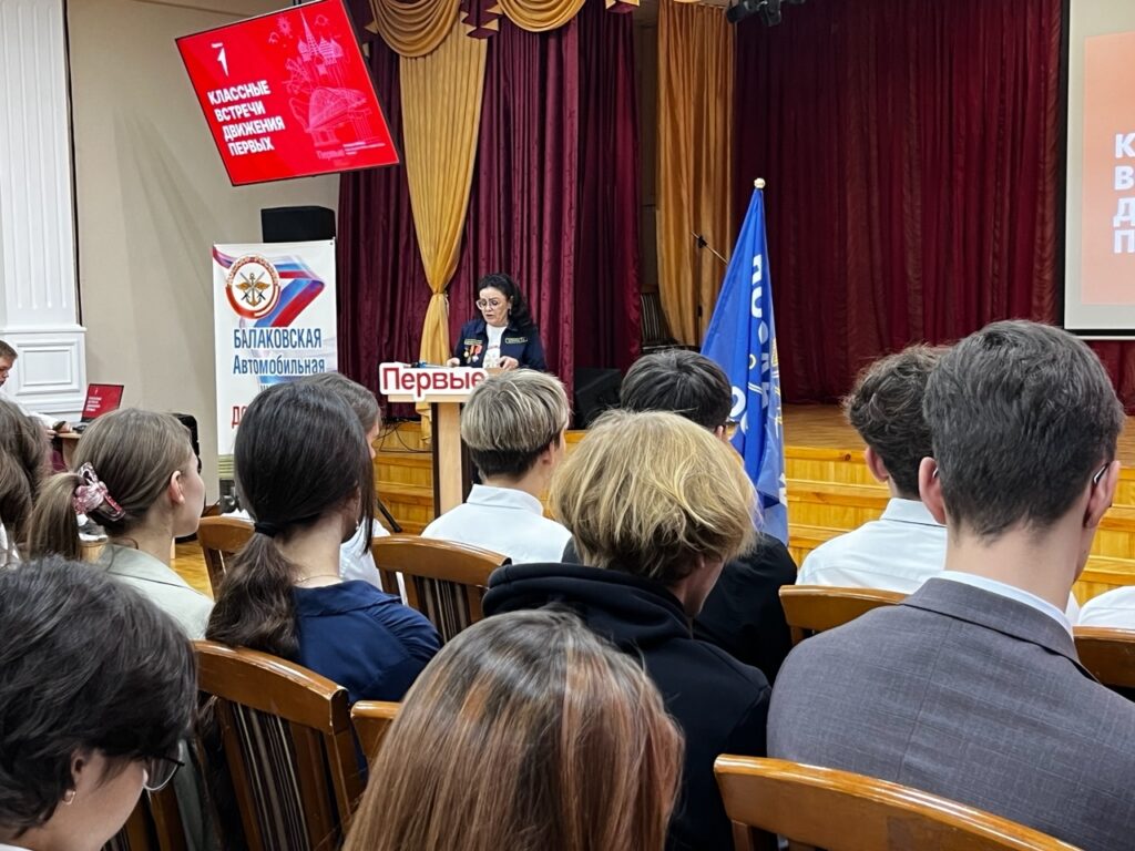 В соответствии с соглашением о сотрудничестве, подписанным между ПОУ «Автомобильная школа ДОСААФ России в городе Балаково»  и  МАОУ Гимназия №2 города Балаково, в рамках проекта «Классные встречи» в гости к  старшеклассникам гимназии была приглашена начальник оборонной организации Людмила Васильевна Шохина. В актовом зале собрались ученики и педагоги, всего около 100 человек. В ходе мероприятия Людмила Васильевна познакомила старшеклассников с историей возникновения ДОСААФ, подчеркнув её важную роль в подготовке будущих защитников Отечества. Основное внимание было уделено периоду Великой Отечественной войны, когда именно ДОСААФ стал ключевым звеном в обучении и мобилизации населения. Были приведены яркие примеры мужества и самоотверженности членов организации, внесших значительный вклад в победу над врагом. Также Людмила Васильевна отметила, что на современном этапе ДОСААФ продолжает свою деятельность, занимаясь не только подготовкой будущих военнослужащих, но и предлагая широкий спектр увлекательных занятий, начиная от обучение вождению автомобилей, занятия авиа и парашютным спортом, радиолюбительским и мотоциклетным спортом,  авиа и судомоделизмом . Организация активно взаимодействует с Министерством обороны и органами местного самоуправления, способствуя патриотическому воспитанию молодого поколения. В ходе встречи был продемонстрирован короткий фильм о деятельности ДОСААФ Саратовской области.  В завершение мероприятия Людмила Васильевна вручила грамоту и обучающемуся 11а класса Бурмистрову Вадиму, занявшему 1 место в Первенстве Балаковского муниципального района по кроссовому бегу среди СОШ г. Балаково.  Администрация и обучающиеся гимназии искренне благодарили Людмилу Васильевну за интересный рассказ и выразительную подачу материала и  пожелали ей дальнейших успехов в благородном деле подготовки будущих защитников Родины!